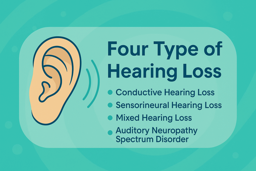 The main four types are Conductive, Sensorineural, Mixed, and ANSD.